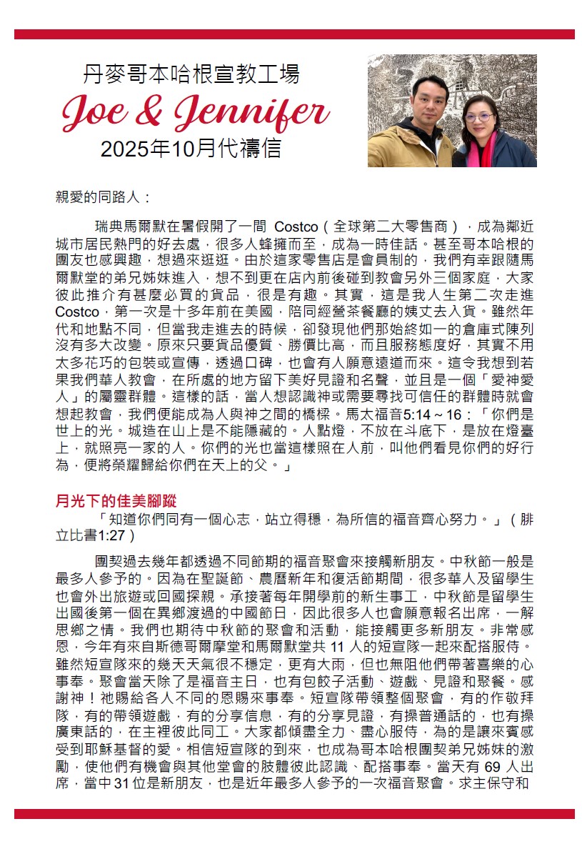 請弟兄姊妹以禱告和奉獻支持聯合差傳事工(丹麥哥本哈根)。
