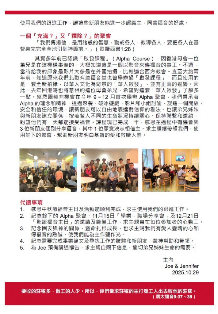 2. 请看陆传道10月份的代祷信并祷告挂念他们的需要